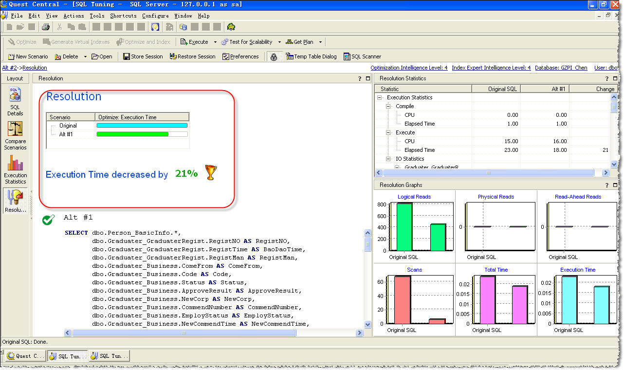 可以看到最优的SQL已经出来啦,运行时间竟然可以提高21%!(图7)