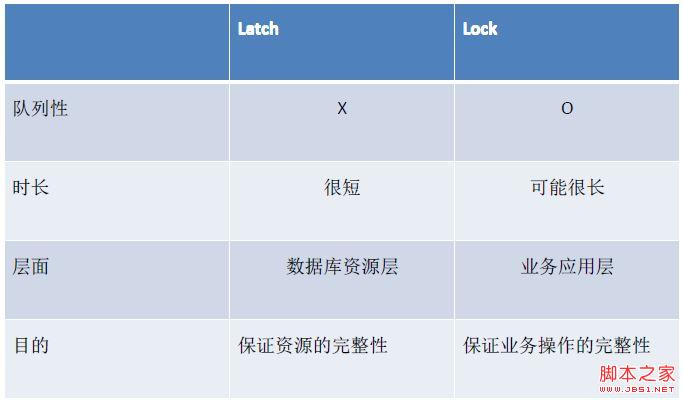 首先,它们的目的不一样,enqueue (即Lock,Oracle官方文档混合使用这两个名词,在等待事件里,可以看到大量的enqueue,其实就是lock)是为了解决业务层面的数据争用,而latch是为了解决内存资源的争用。