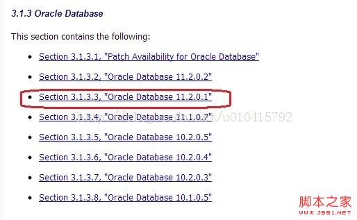 右边点击Database链接,就是该补丁的一个详细说明文档,找到3.1.3 Oracle Database,并点击相应的数据库版本(如下图所示)