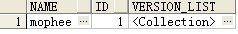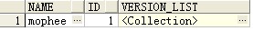 这是在 pl/sql developer下的查询输出,注意 version_list 列数据单元格的背景色(与上方图片对比一下)已经不是淡黄色(此时字段值为null)!虽然查看 version_list 字段的内部内容依旧是没有一条记录,但是意义上是不一样的——初始化之前是 null,初始化之后才是 list_obj 对象。