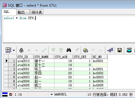 /*查询表数据*/ select * from STU