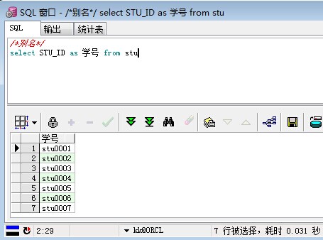 /*别名*/ select STU_ID as 学号 from stu