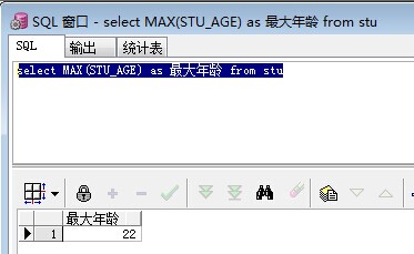 /*最大值*/ select MAX(STU_AGE) as 最大年龄 from stu