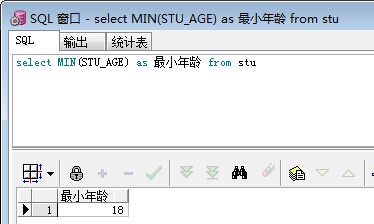 /*最小值*/ select MIN(STU_AGE) as 最小年龄 from stu