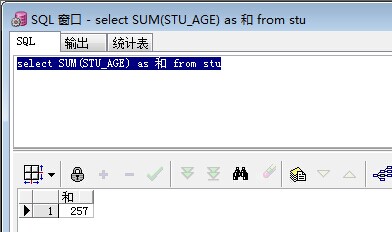 /*求和*/ select SUM(STU_AGE) as 和 from stu