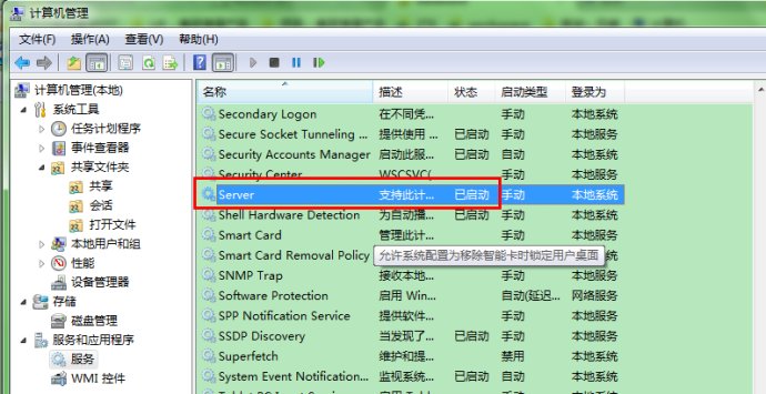 第一步:控制面板>所有控制面板项>管理工具>服务>SERVER启动