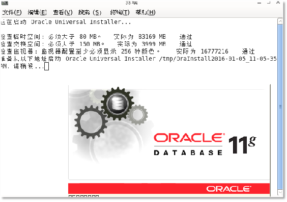 找到解压包后database里runInstaller选择在终端中打开,待安装文件检查结束后出现图形界面安装: