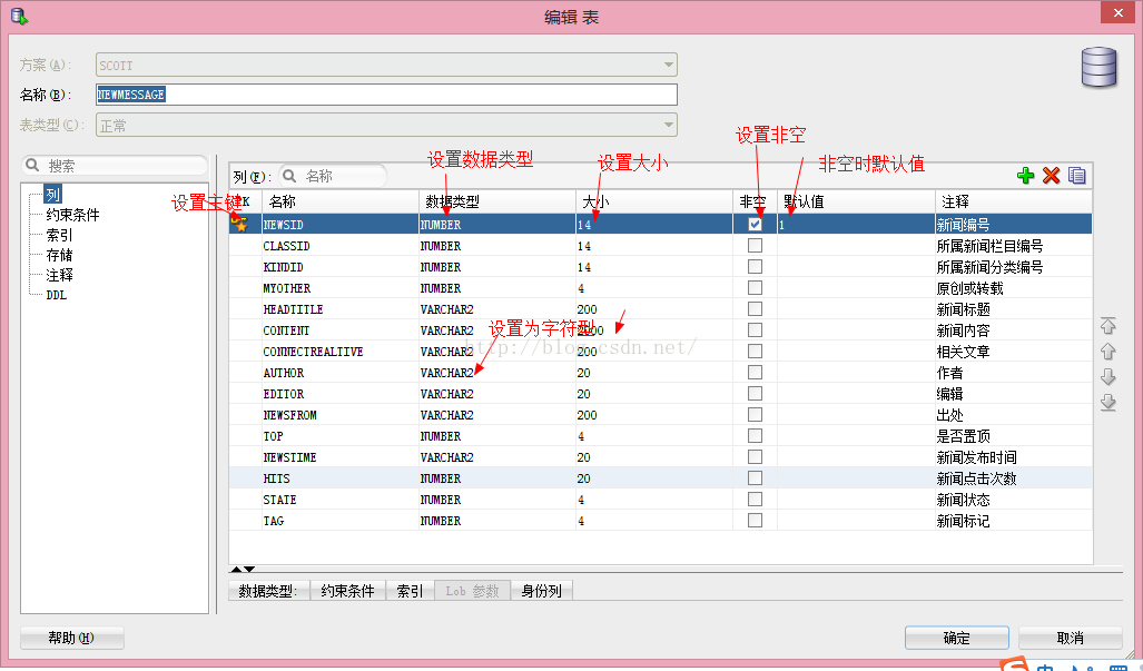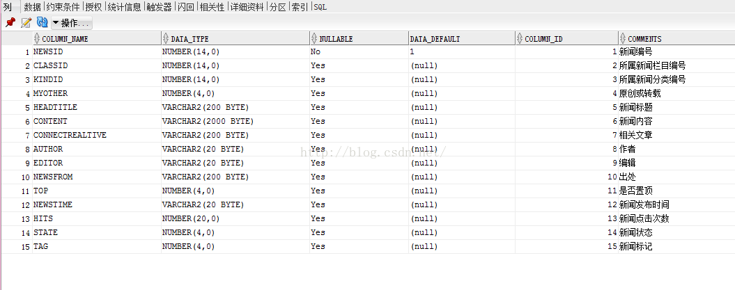 (2)开始创建表,我们进行创建一个有关新闻信息的简单表,其中包含信息如下所示: