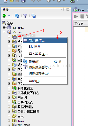 (2)在sql developer中进行创建,而对于在可视化界面sqldeveloper中创建时,也有两种方式,即一种是使用命令直接进行创建,另外一种是使用可视化界面按钮进行点击创建