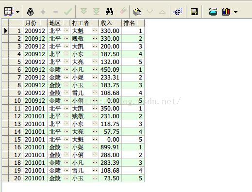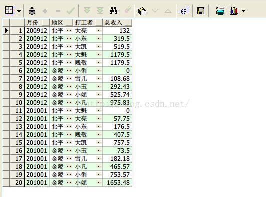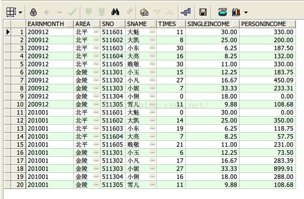 select earnmonth 月份,area 地区,sname 打工者, personincome 收入,