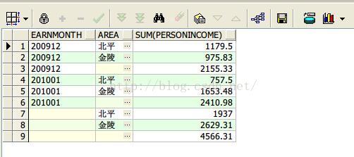 group by 后面接 cube 是对earnmonth汇总统计基础上对area再统计。