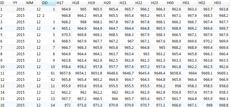 Oracle数据库“TBYZB_FIELD_PRESSURE”表中数据如图: