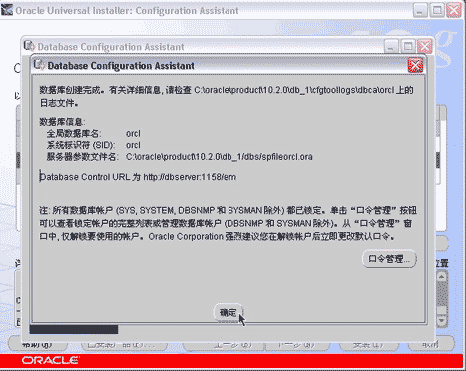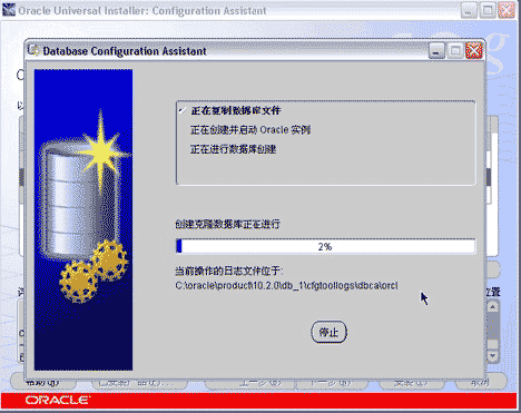 经过数分钟的文件安装过程之后,开始执行数据库配置助手