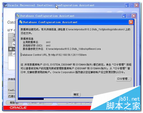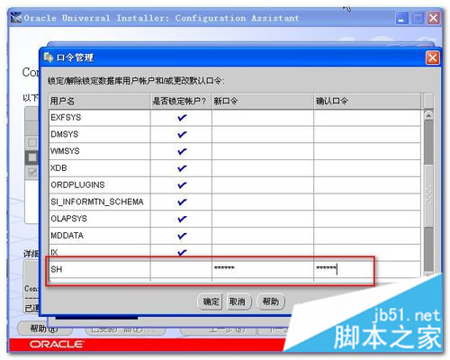 点击【口令管理】,打开口令管理对话框,如图,设置sys,和system用户密码, 可以设置为一样
