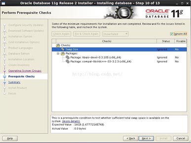然后,执行checksoracle基础组件,如果有libaio、compat的提示,直接IgnoreAll即可,next下一步如010.png所示: