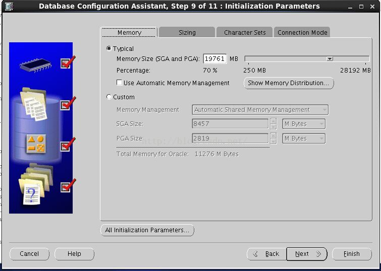 配置sga、pga,默认是40%,这里因为是专用的db服务器,可以调整到70%,如031.png所示: