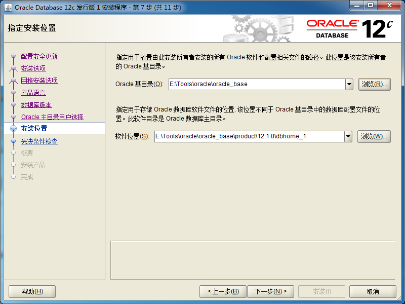 配置两个环境变量(目录最好都用英文,选择一个oracle基目录后,下面的软件位置会有一个默认的路径)