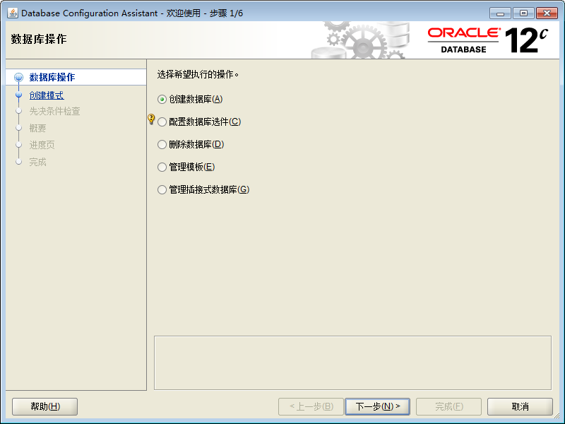 win+r进入命令台,直接输入dbca,进入到如图画面: