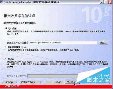 指定数据库存储选项(使用默认选项文件系统即可),按下一步按钮