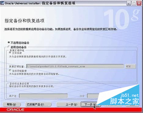 指定备份和恢复选项(使用默认选项不启用自动备份即可),按下一步按钮