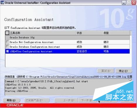经过数分钟的文件安装过程之后,开始执行数据库配置助手