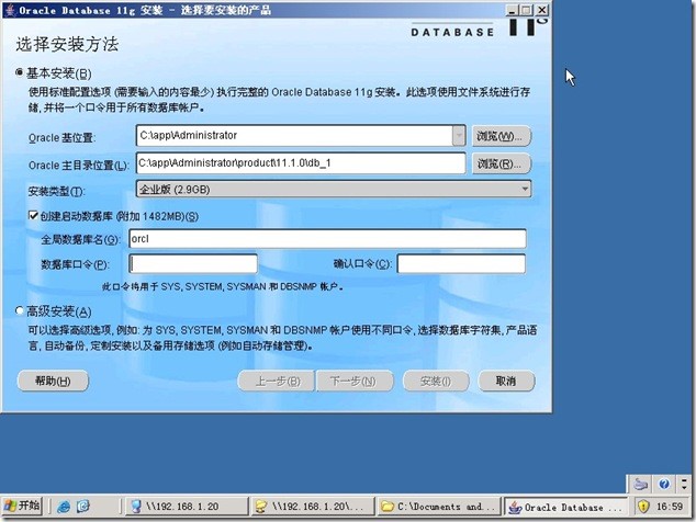 基本安装(I):使用标准配置选项(需要输入的内容最少)执行完整的11g安装。