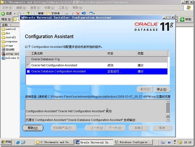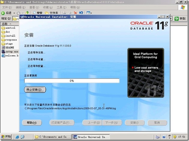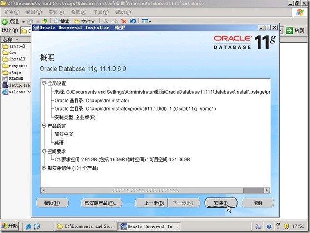 解压缩后就可以安装了。执行SETUP.EXE ,在DOS下运行片刻进入ORACLE 11G