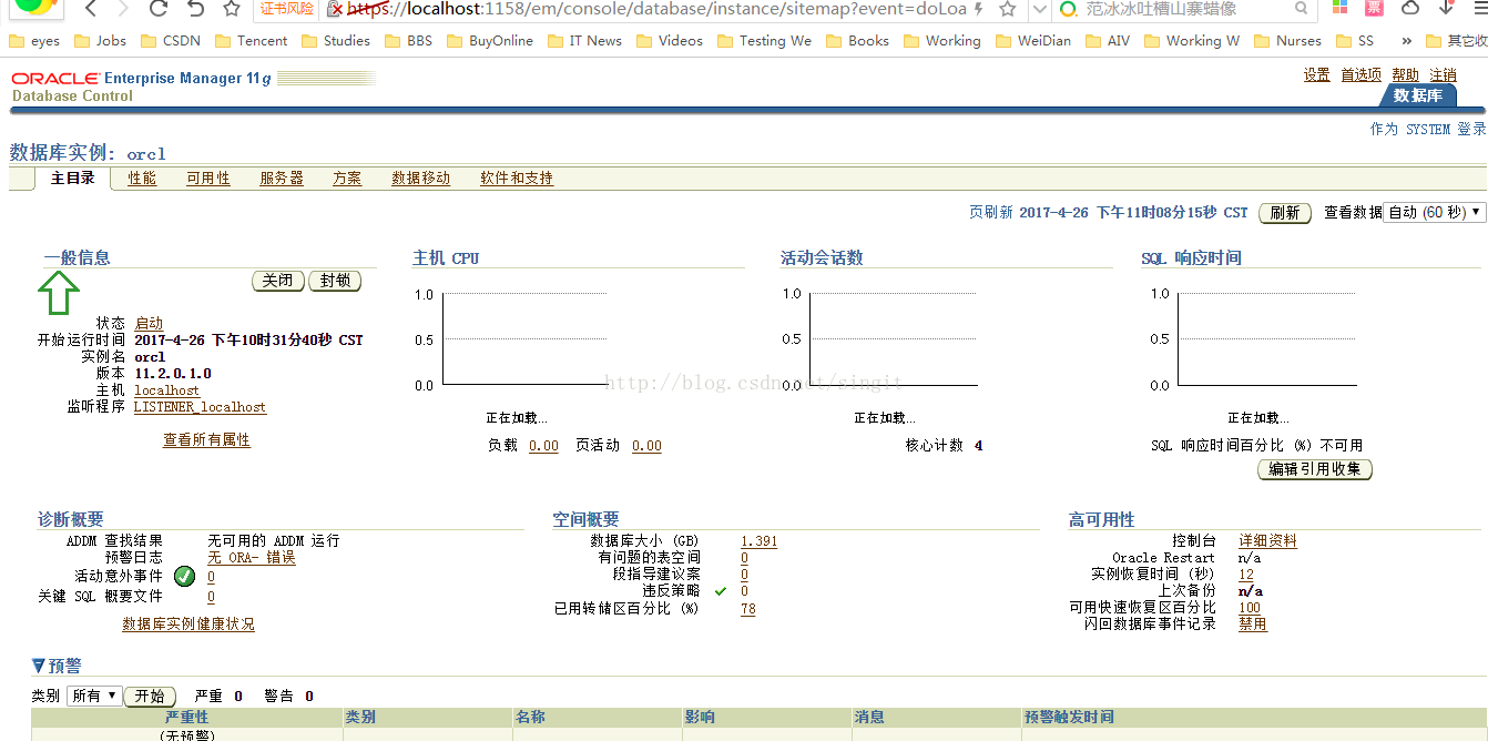 然后根据上图提示安装成功给的地址:https://localhost:1158/em