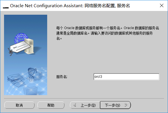 3.输入服务名(例如:orcl3即服务器数据库名)