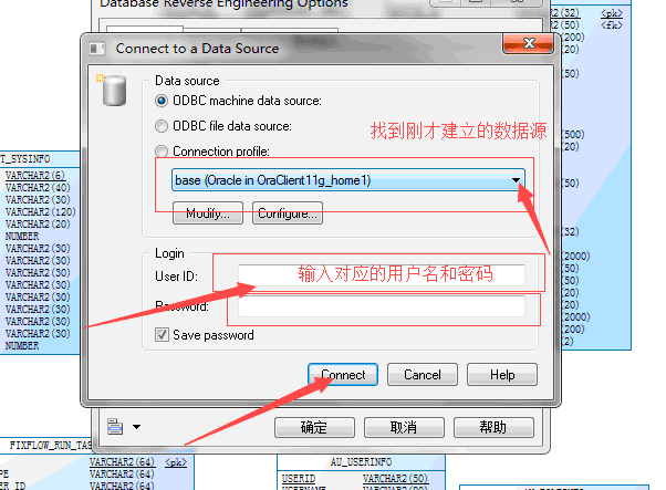 6、打开PowerDesigner,在DataBase下拉菜单选择点击Connect,选择刚才配好的ODBC就可以了!