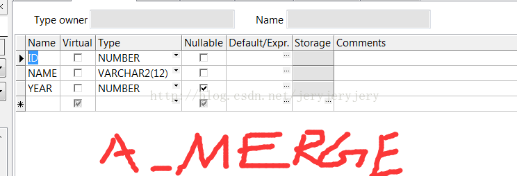 create table A_MERGE ( id NUMBER not null, name VARCHAR2(12) not null, year NUMBER ); create table B_MERGE ( id NUMBER not null, aid NUMBER not null, name VARCHAR2(12) not null, year NUMBER, city VARCHAR2(12) ); create table C_MERGE ( id NUMBER not null, name VARCHAR2(12) not null, city VARCHAR2(12) not null ); commit;