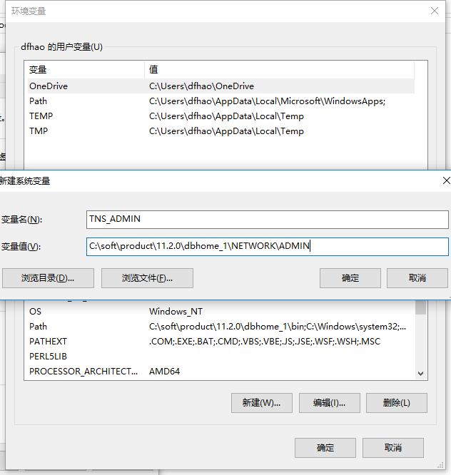 新建TNS_ADMIN=C:\soft\product\11.2.0\dbhome_1\NETWORK\ADMIN