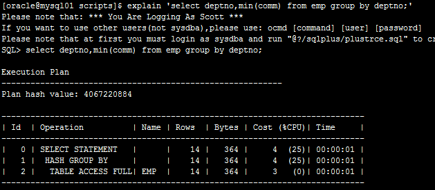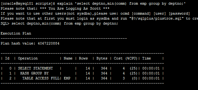 当我们添加了非空约束后,deptno不可能为空,因此索引的key值数等于表总行数,另一列comm即便为空也不影响min()取值,只需要扫描索引即可得到所需结果,此时优化器选择索引扫描。