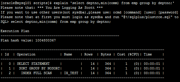2.添加IX_TEST(deptno,comm)后查看执行计划: