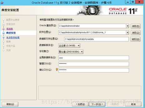 这一步记好设置的口令 ,是之后sys账户的口令,不设置的话sys账户的默认口令是manager。