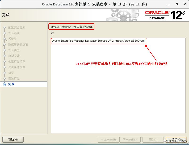 如果没有弹出窗口,可以参考前面的步骤,以root用户运行“xhost +”命令,再以oracle身份运行“export DISPLAY=:0.0”命令。