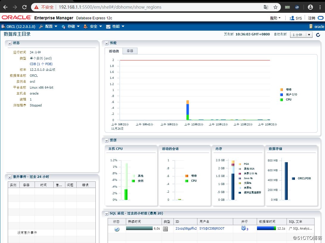 [oracle@oracle ~]$ sqlplus sys/123456 as sysdba //使用命令行登录 SQL*Plus: Release 12.2.0.1.0 Production on 星期二 11月 26 10:57:41 2019 Copyright (c) 1982, 2016, Oracle. All rights reserved. 连接到: Oracle Database 12c Enterprise Edition Release 12.2.0.1.0 - 64bit Production SQL>