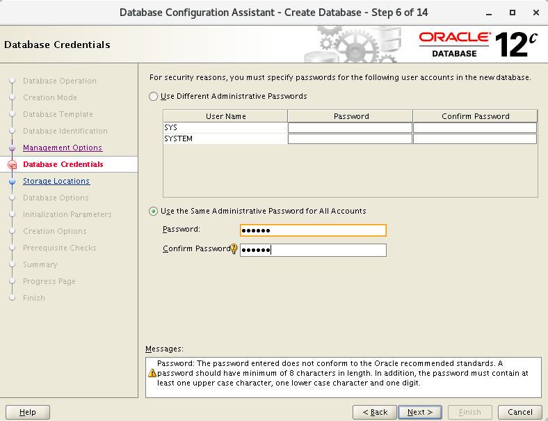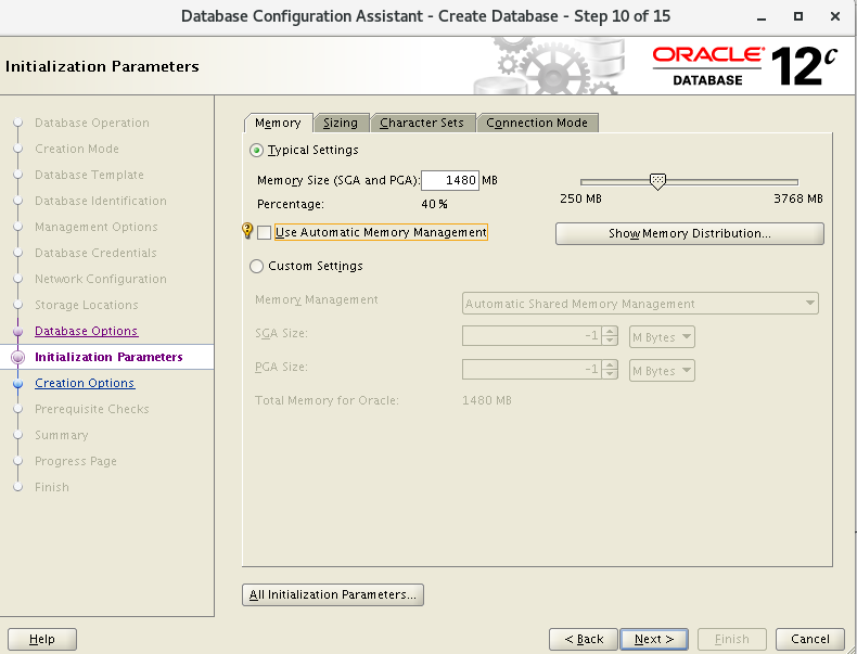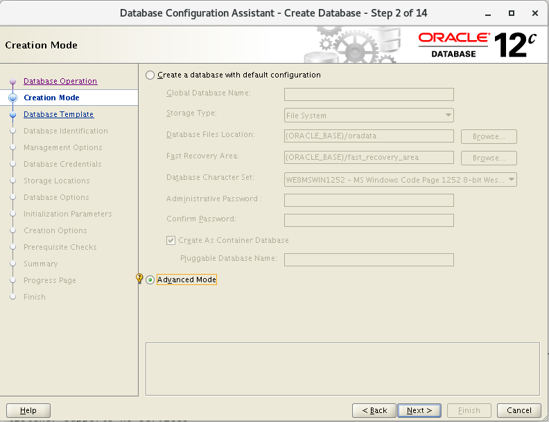 六、使用dbca创建数据库实例