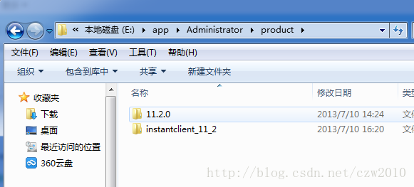 2. 解压instantclient-basic-win32-11.2.0.1.0并放置在oracle安装目录的product下(放置位置无强制要求,可随意放置),如下图: