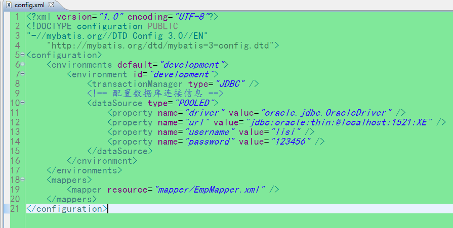 第六步:在src/main/resources下建立config.xml:配置数据库连接信息