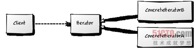 在对象的世界里,迭代器模式要维持类似数组的功能,看作是一个非侵入性对象刻面(facet),Client类往往分离自真实对象实现,指iterator接口。只要有可能,我们可以给迭代器传送一个引用,代替将来可能发生变化的具体或抽象类。