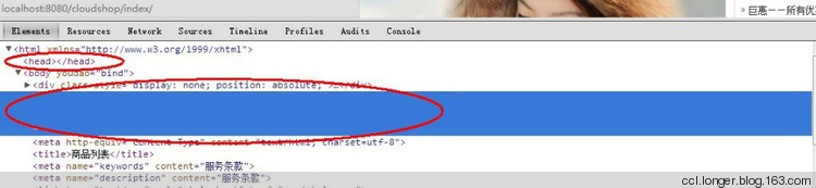 但是在开发的过程中,发现一个小细节的问题,必须要打开F12才能看到的,原来,在head头部里面的所有引用的东西以及title等等,全部都跑到body里面去了,苦思冥想,百度、google全找不到答案。只好放弃了因为他并没有影响到我的功能以及页面上的样式。