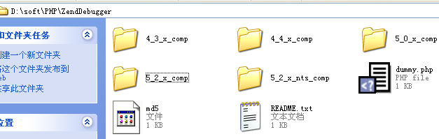 2、安装ZendDebugger。把ZendDebugger-5.2.14-cygwin_nt-i386.zip解压到PHPnow安装目录,即“D:\soft\PHP”,然后把ZendDebugger-5.2.14RC9-cygwin_nt-i386文件夹名字改成ZendDebugger这样短文件名,进到ZendDebugger目录,我们可以看到下面那样的文件结构: