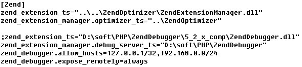 (1);zend_extension_ts="D:\soft\PHP\ZendDebugger\5_2_x_comp\ZendDebugger.dll"这是我注释的,因为这样设置zend_extension_ts重复,出现不能与ZendOptimizer共存情况。