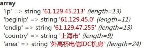 通常,我们要获取IP定位的话,只需要取country和area信息: