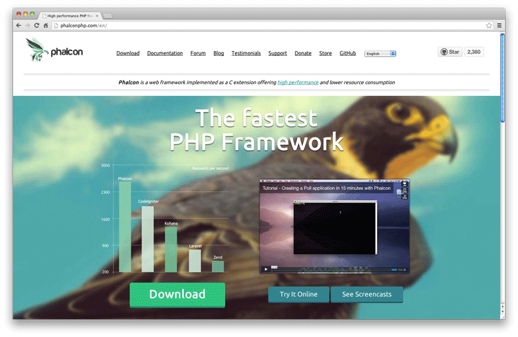 Phalcon 是一个开源的,满栈的 PHP 框架,使用 PHP 5 类似 C 扩展的语言来编写的高性能框架。用户不需要会用 C 语言,Phalcon 会提供 PHP 类。Phalcon 是松散耦合,用户可以随意使用组件来创建 web 应用。