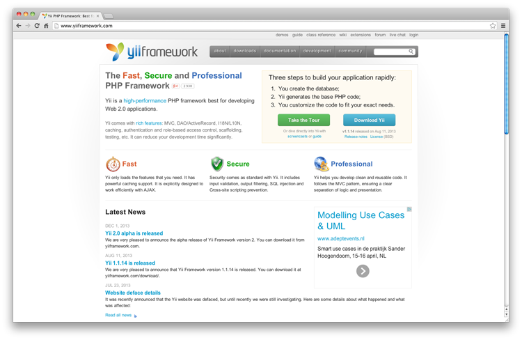 这个框架是在 2005 年创建,是个非常强大的 MVC 框架,在企业界是非常受欢迎的。Symfony 是收到众多的 web 应用框架启发的:Ruby on Rails,Django 和 Spring ,它可能是最完整的 PHP 框架了。