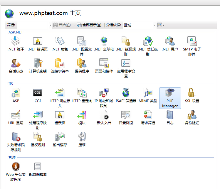安装完phpmanager 点击iis站点会出现phpmanager的图标
