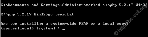 首先脚本会询问是把 pear 安装为系统范围的还是本地拷贝,这里我们默认选择系统,直接回车即可
