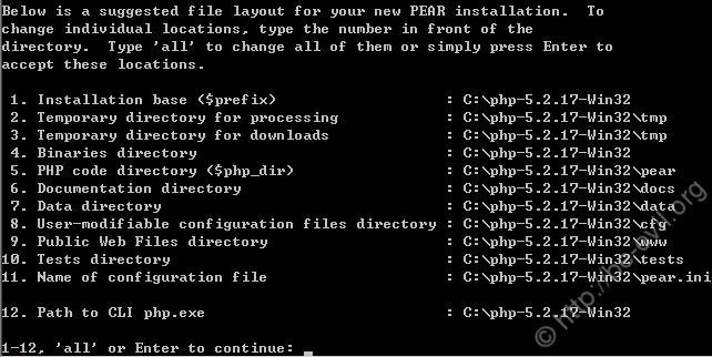 5、这时显示当前的路径配置,并询问你是否修改,我们保持默认依然回车即可,回车后脚本就会开始自动安装 pear 库了